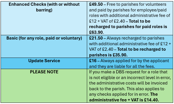 These prices have recently been updated since our changeover of DBS provider. If you have not yet registered to create an account with DDC, please email safeguarding@diocant.org for further instructions and support.