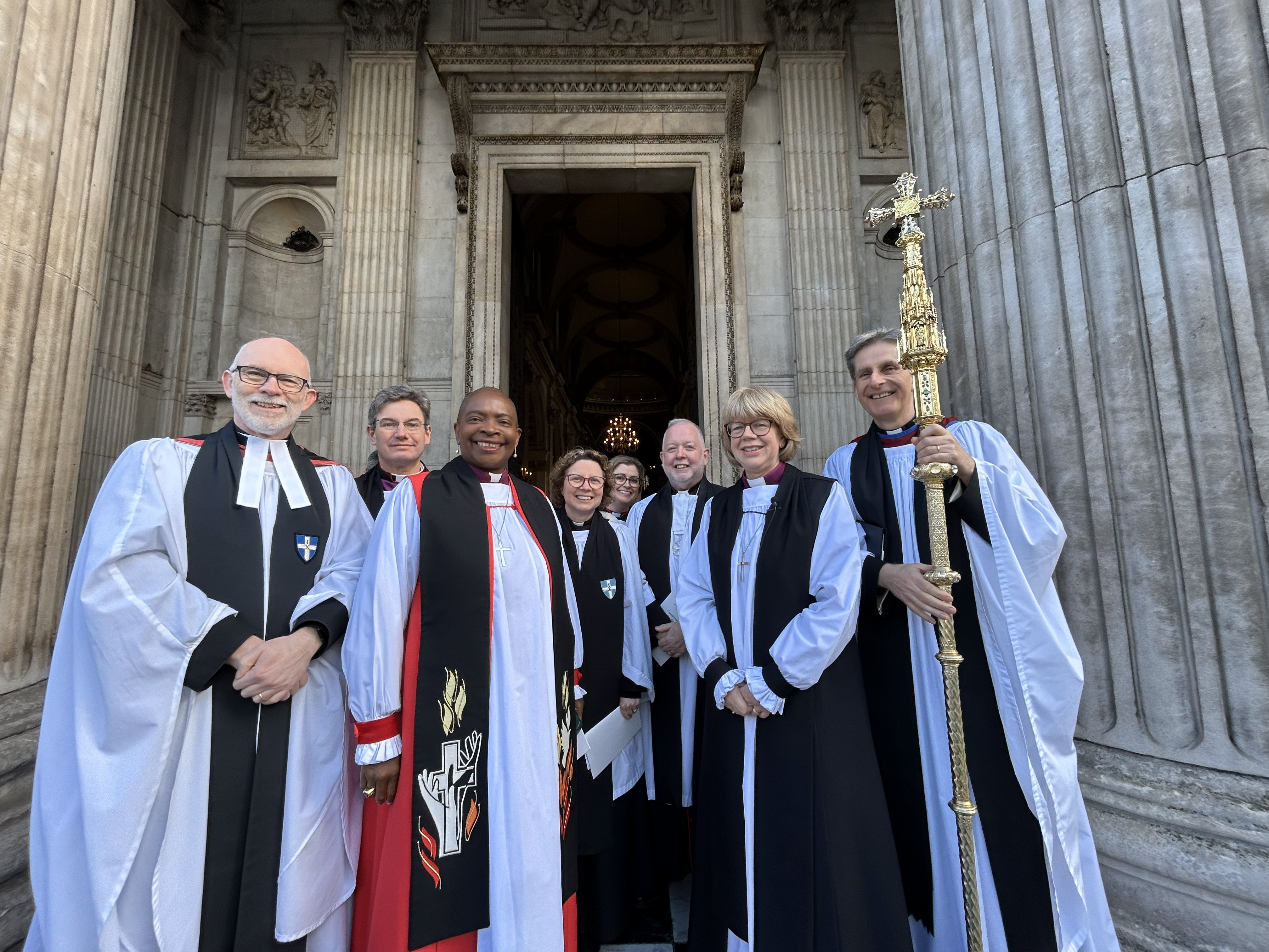 The Chapter of Canterbury Cathedral processed alongside the Chapter from St Paul’s Cathedral and David Monteith, Dean of Canterbury greeted the Lord Mayor’s representative. Following the service, Benn Swinfield, Senior Stonemason at Canterbury Cathedral inscribed a plaque in St Augustine’s Chapel with Bishop Sarah’s name, adding her to the list of archbishops going back to St Augustine.